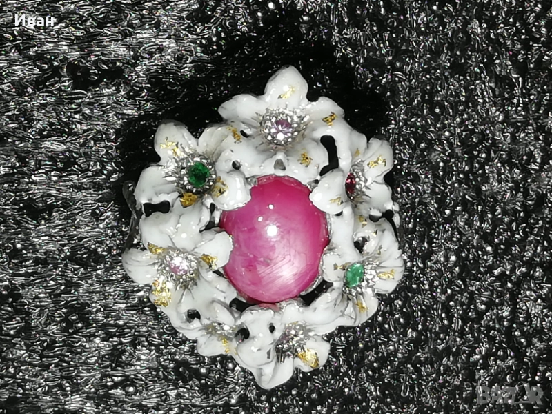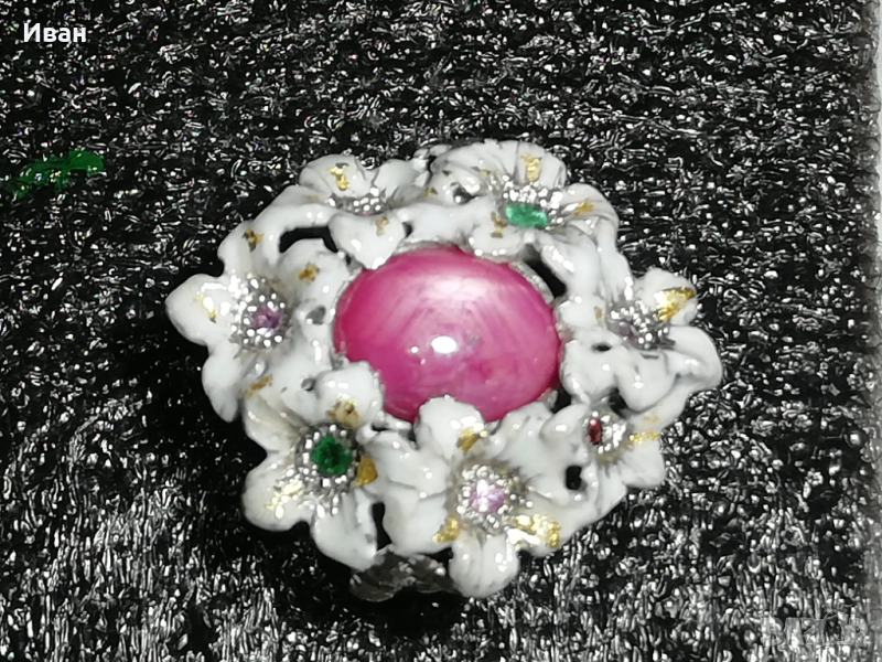 Сребърен пръстен с розов Сапфир зведен - 6 лъча.
