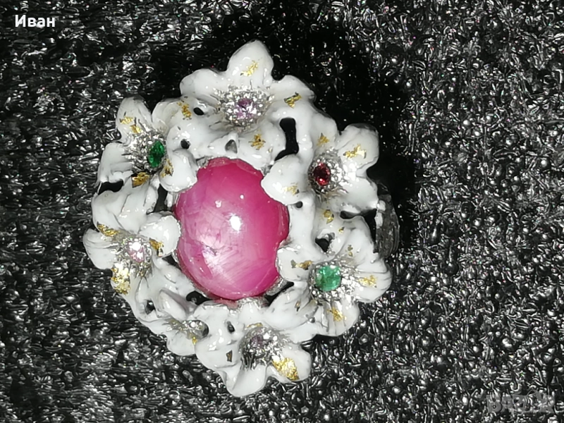 Сребърен пръстен със Сапфир зведен - 6 лъча → Обява 51688620