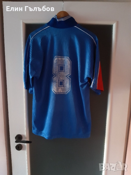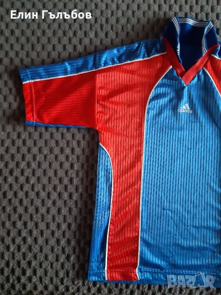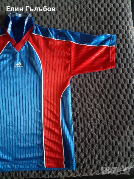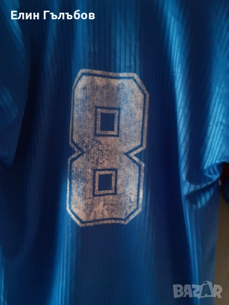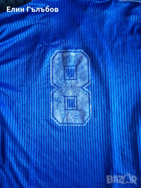 Няма скъсано по нея , има издърпано на места . Номера с , който играеше Генади Симеонов - 8 и логото на ADIDAS на гърдите са леко изтъркани (избледнели) , но се виждат ясно .