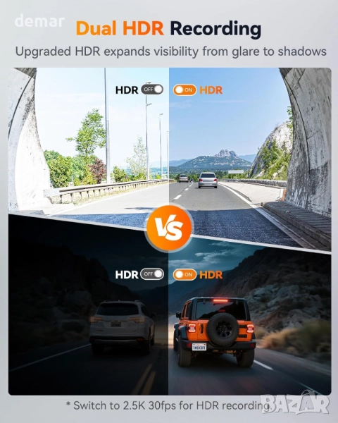 WOLFBOX 60FPS Видеорегистратор, 2.5K+1080P предна и задна камера