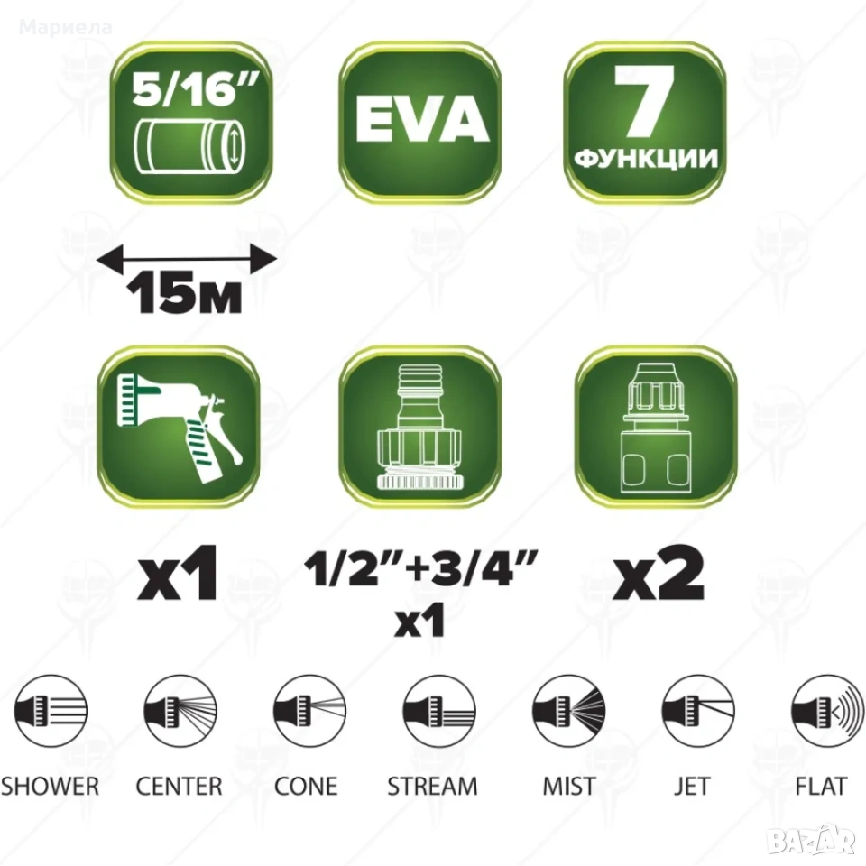 Разпръскващия пистолет има 7 режима .