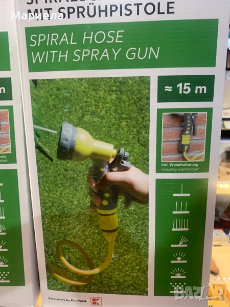 Спирален маркуч с разпръскващ пистолет → Обява 51688801