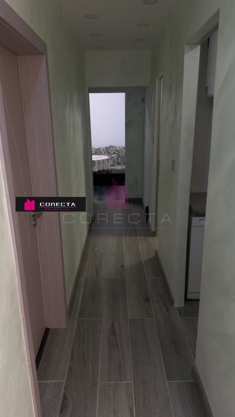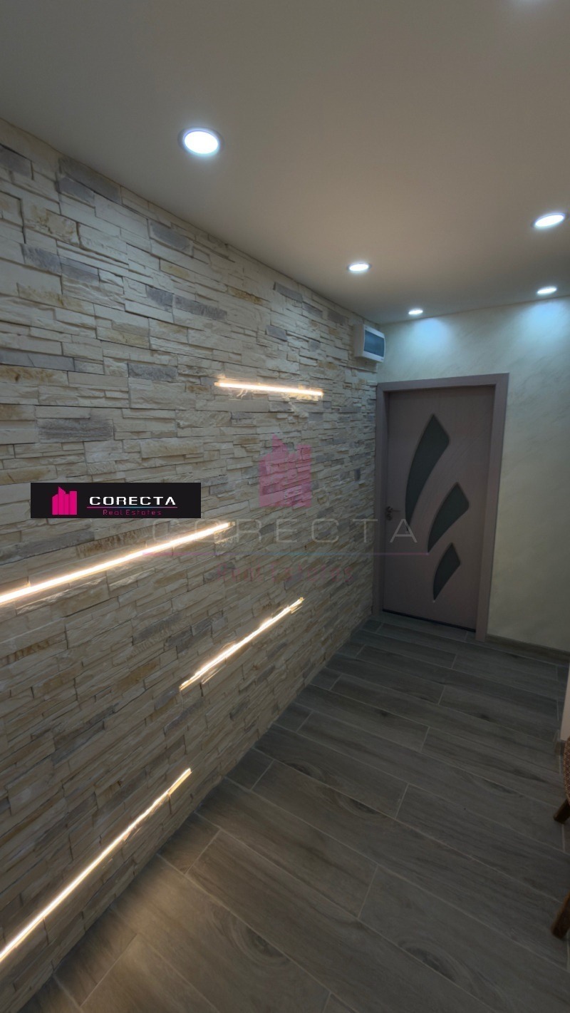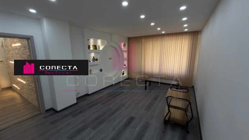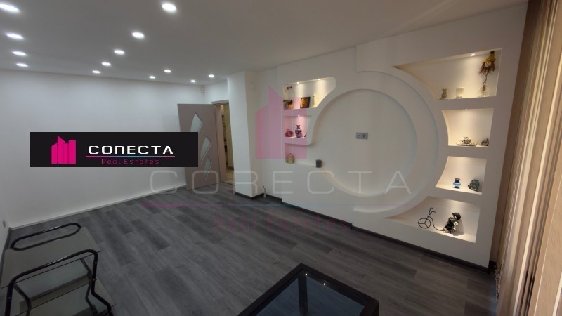 КОРЕКТА ЕСТЕЙТ Ви предлага просторен четиристаен апартамент, находящ се в централната част на кв.Дружба 3, в близост до спирки, магазини и детски площадки. Жилището е разположено на предпочитания трети етаж в панелен блок с асансьор и е със следното разпределенеие: коридор, просторна всекидневна с кухненска част и тераса, две спални, стая, два санитарни възела и втора тераса. Направен е цялостен ремонт, като дограмата е подменена с PVC, баните са чисто нови (неизползвани), поставена е подова настилка, интериорни врати, декоративни стени с камък и гипсокартон и много други подобрения. Отоплението е решено на ток. Към жилището има прилежащо избено помещение.