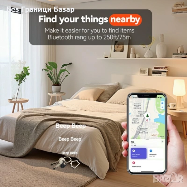 Реално време локация чрез Find My и Bluetooth обхват до 40 м