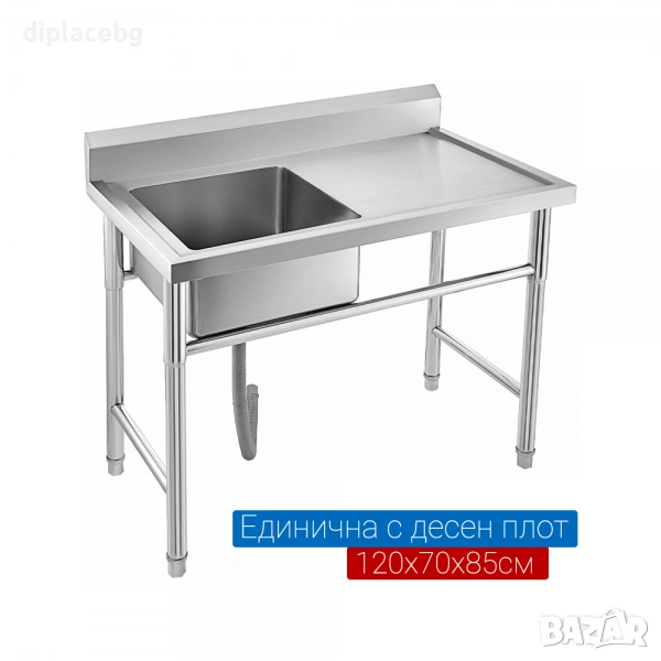 16 модел Мивка от неръждаема стомана с десен плот 120х70х85см
