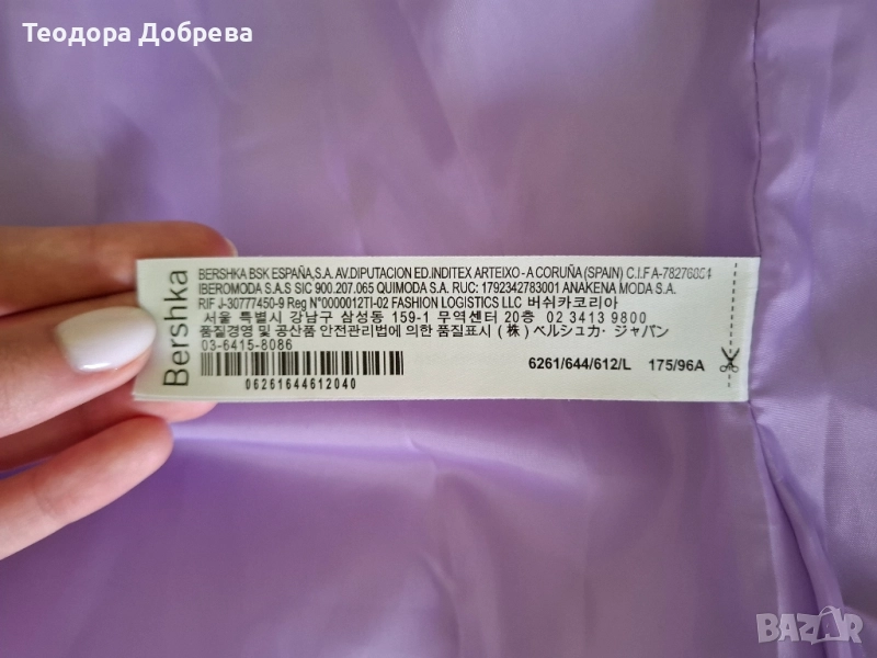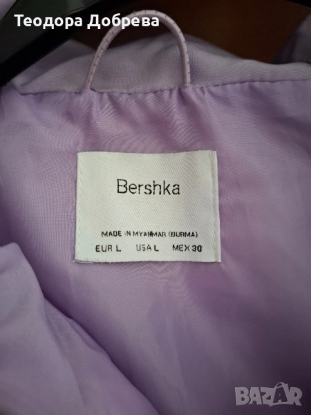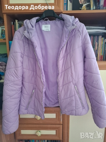 Продавам дамско яке Bershka в светъл лилав цвят. Обличано е само няколко пъти, като ново е и е без дефекти.