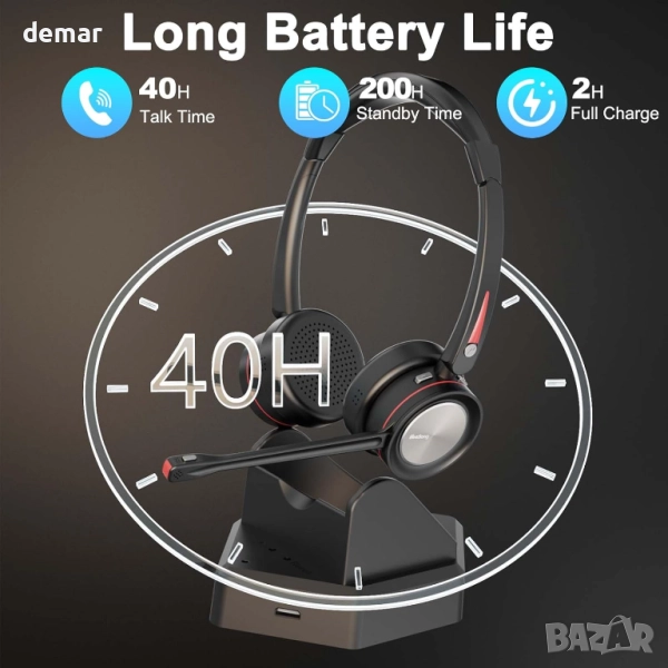 Тези Bluetooth слушалки съчетават усъвършенствано шумопотискане с изкуствен интелект, което блокира до 95% от фоновия звук, с бутон за изключване на звука за незабавна поверителност, което ги прави идеални за професионални разговори и срещи. Те разполагат с Bluetooth 5.2 с многоточково сдвояване и USB адаптер за стабилни връзки между множество устройства. Предлагайки до 40 часа живот на батерията, те поддържат дълги работни сесии, онлайн курсове и конференции. 40-милиметровите драйвери осигуряват ясен стерео звук с дълбок бас и отчетливи високи честоти както за разговори, така и за музика. Проектирани за комфорт, те включват омекотени наушници, регулируема лента за глава и въртящ се микрофон за гъвкаво носене през целия ден.