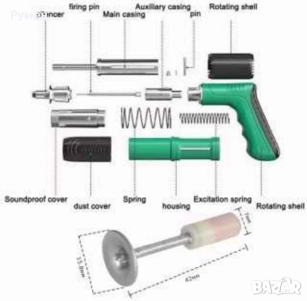 Безопасност и Комфорт в Употребата: Оборудван със защитна система и удобна дръжка, предотвратяваща случайно изстрелване.