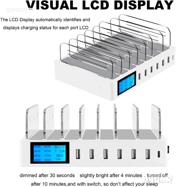 Смарт зарядна станция за 7бр телефони и таблети (70W, QC3.0)
