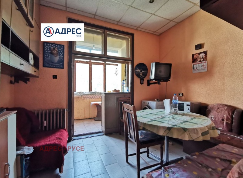 Предлагаме Ви, тристаен апартамент с централен ТЕЦ в района на Операта и Общината, разположен на четвърти жилищен етаж, в тухлена сграда без асансъор. Сградата е стабилно качествено строителство с широки и полегати стълбища. Апартаментът се състои от кухня с усвоена остъклена тераса, просторен хол с портал, спалня, Г-образен коридор, баня и санитарен възел заедно. Жилището е за ремонт, подовите настилки в спалнята и хола са от естествен дървен паркет. Отопление и топла вода на ТЕЦ. Към жилището има прилежащо избено помещение с площ 4,85 кв.м. и таван с площ 21,94 кв.м., ведно с идеални части от сградата. Отлично поддържани общи части, с контрол на достъп. За повече информация и осъществяване на огледи: 0890567890 - офис Адрес Русе