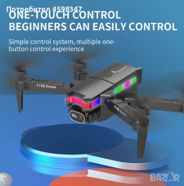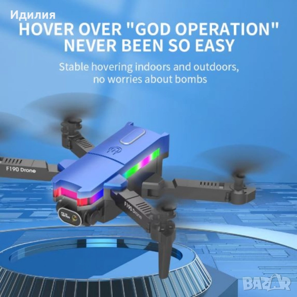 Дрон F190 с 4K камера, LED светлини и WiFi – Черен модел с висока маневреност и интелигентни функции → Обява 51692517