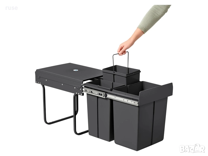 - С практично разделение на отпадъците: 3 изваждащи се кофи с дръжка