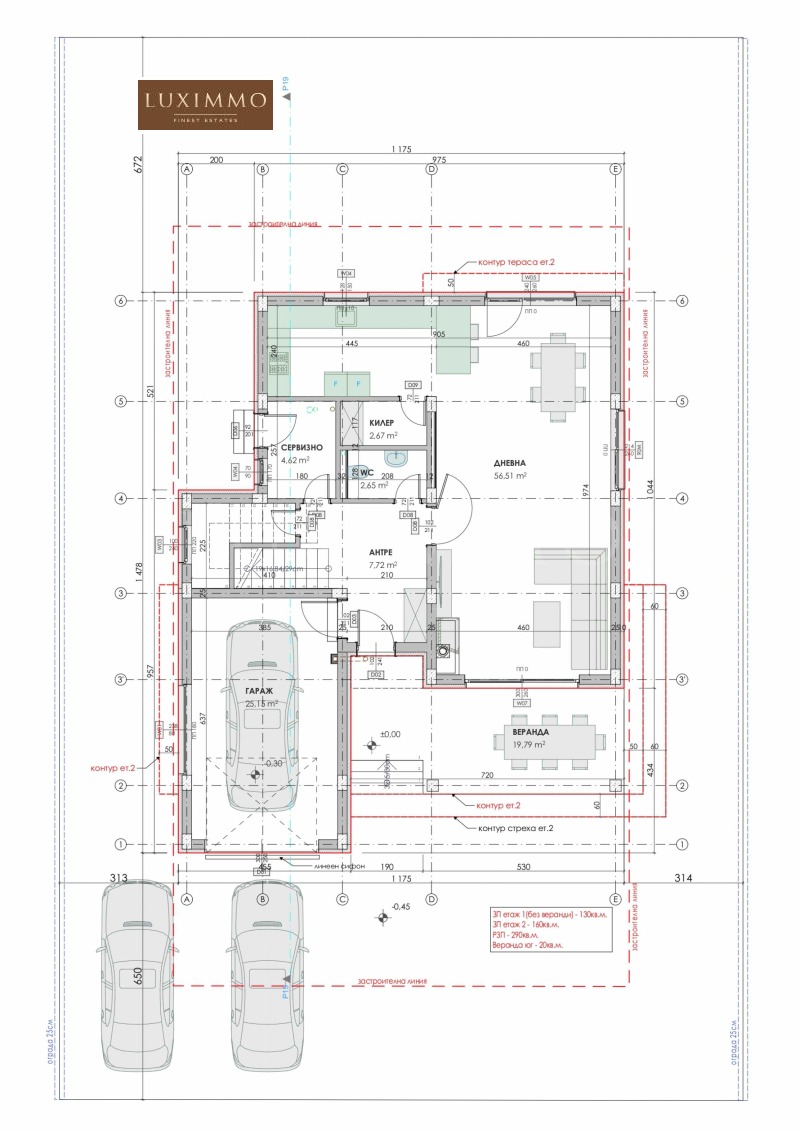 Гараж - 25.15 кв.м с директен достъп до къщата;