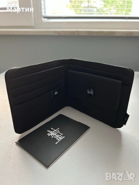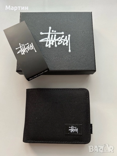 Продавам чисто нов портфейл Stussy – унисекс модел. Има отделение за стотинки с метално копче, както и достатъчно място за банкноти и карти. Стилен, практичен и идеален за ежедневна употреба.