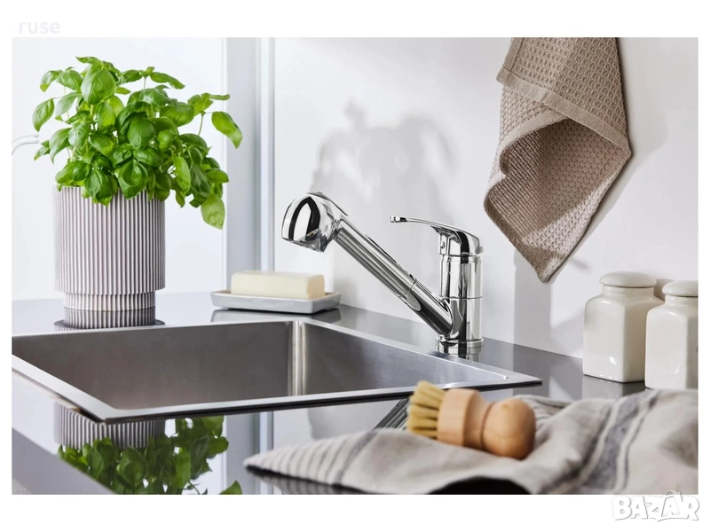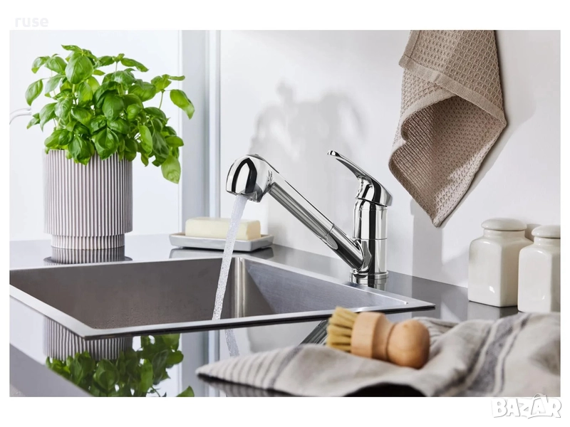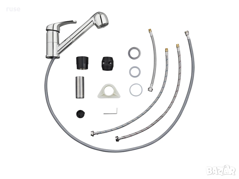 - Изтеглящ се ръчен душ с маркуч с дължина ок. 1,2 m