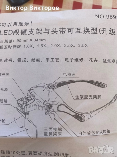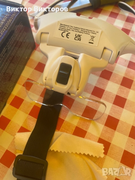 С възможност за лесен монтаж за фиксирането и на глава с еластичен маншон и с възможност за носене като очила при работа с тях .