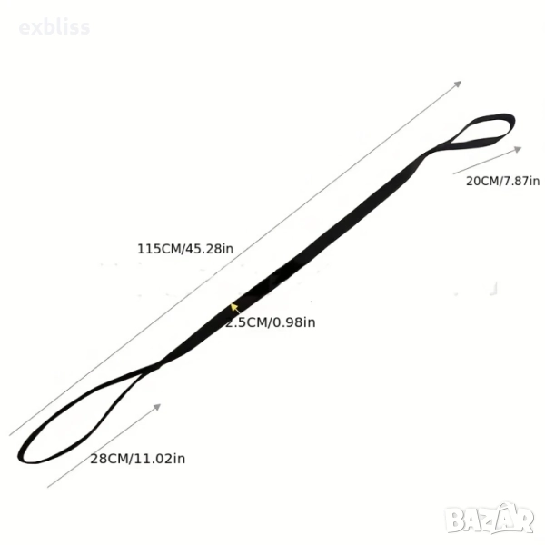 Коланът за повдигане на крака е с точна дължина от 115 см и ширина 2.5 см. Изработен е от висококачествени полиестерни влакна (или неалонова лента), които го правят здрав, издръжлив и устойчив на счупване. Вътрешният железен прът осигурява подходяща твърдост, позволявайки ти лесно да регулираш формата на примката за крака, така че да пасне удобно на повечето размери крака.
