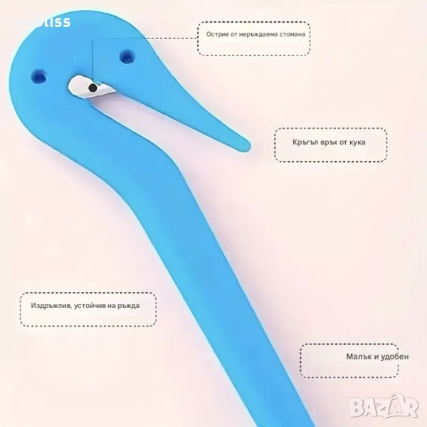 Използването на инструмента е изключително интуитивно: просто закачи ластика с куката на инструмента и след това плъзни, за да срежеш или премахнеш ластика. Дизайнът е толкова прост, че е безопасен за употреба както от деца, така и от възрастни, правейки го идеален аксесоар за цялото семейство.