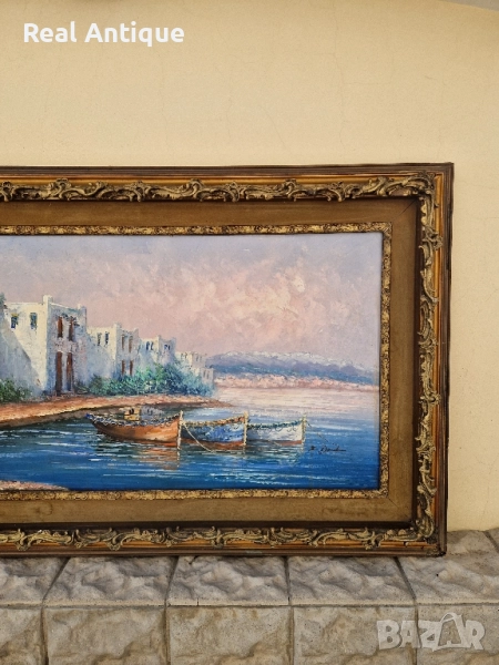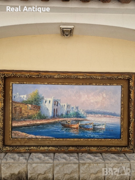Продавам огромна уникална майсторска антикварна авторска картина картина масло върху платно в много добро състояние. Размери 148 см на 88 см. Била е изложена в галерия. Прекрасно допълнение към интериора на Вашия дом офис вила ресторант хотел. Подходяща и за подарък. Работя с всички куриери. Отговарям бързо.