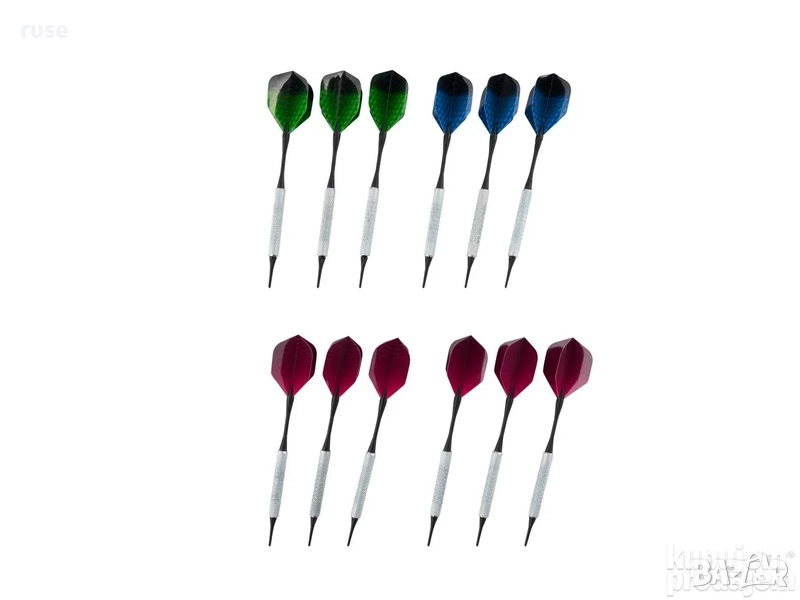 - 12 меки стрелички за дартс (12 g): по 3 в различни цветове