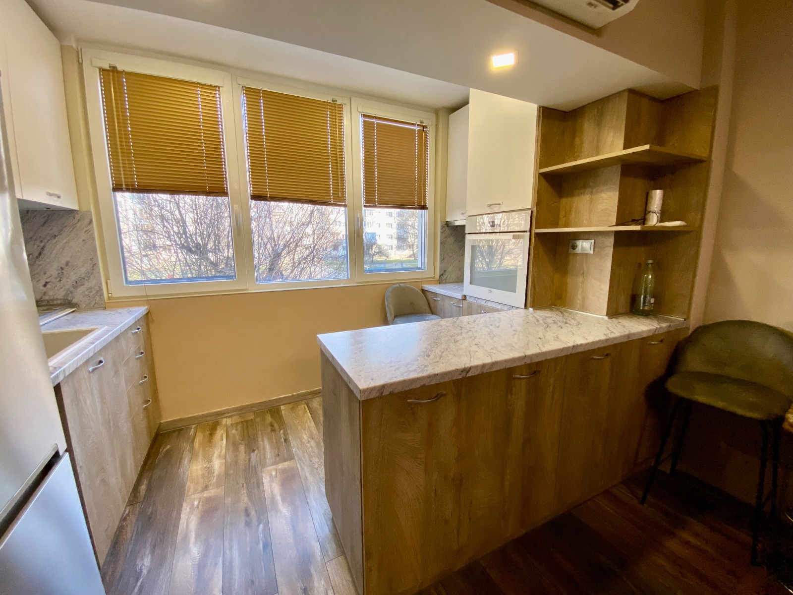 Жилището е ремонтирано изцяло и пространствата са усвоени с максимална ефективност.