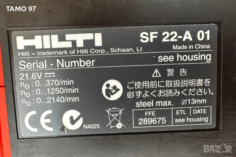 2. Акумулаторен винтоверт: Hilti SF 22-A