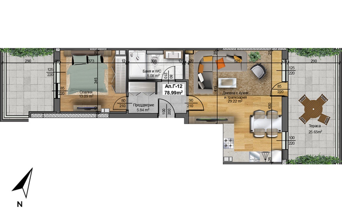 ⏹ Апартамент Г12, който Ви предлагаме, се намира в Секция Г. Общата площ на жилището е разпределена в дневна с трапезария и кухненски бокс, спалня, баня+WC, преддверие и две тераси с обща площ 25,65 кв.м. Изложение: Изток/Запад. Линк към апартамента: https://platinum-eu.com/property/sektsia-v-ap-g-12/