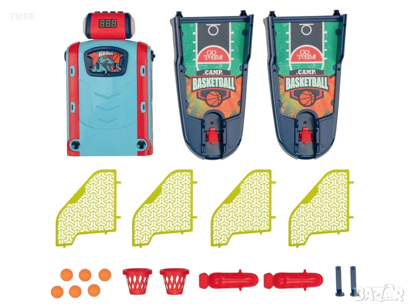 - Съдържание: 1х основен блок с електронен LED дисплей и звукови ефекти, 6х топки за баскетбол, 2х бекборда