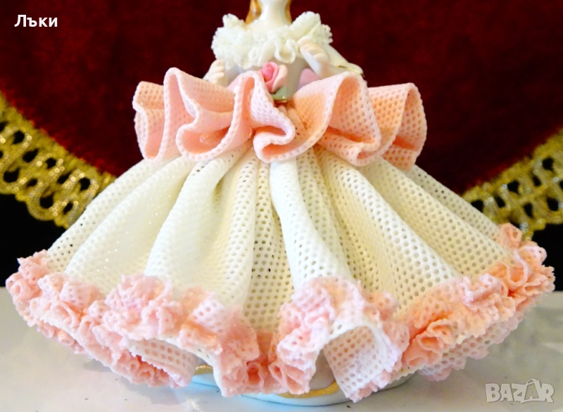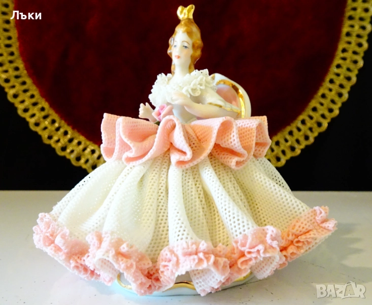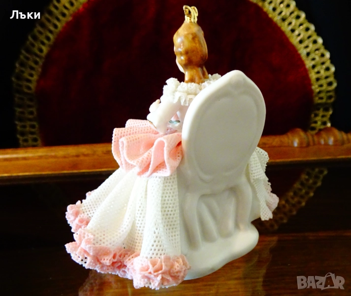 Старинна порцеланова дрезденска дантелена фигура,ръчно