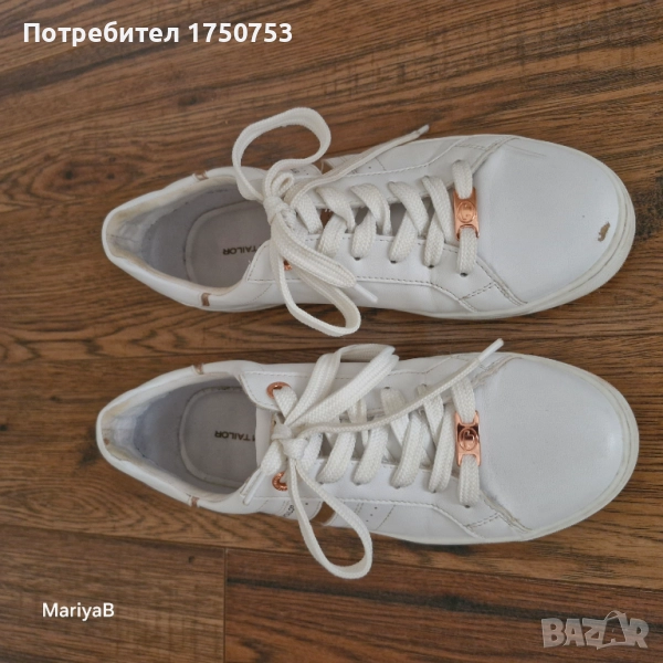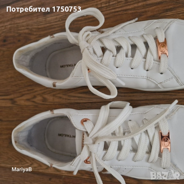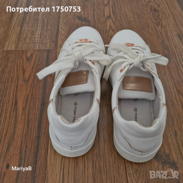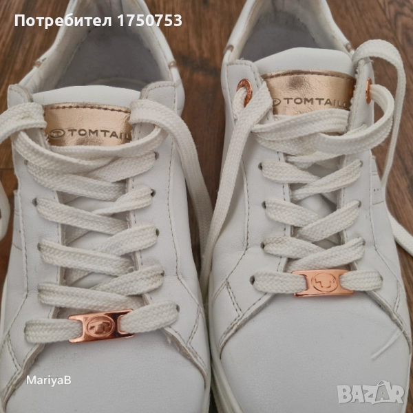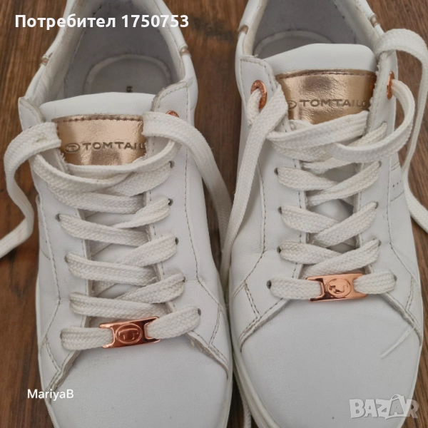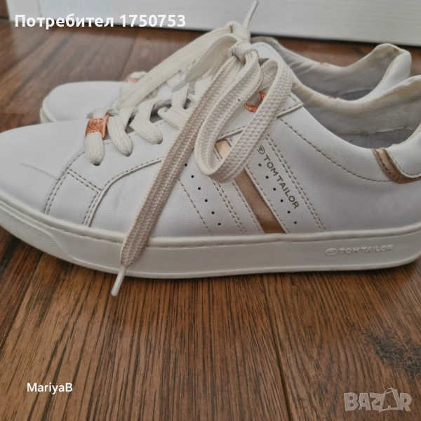Ежедневни , кожени , спортни обувки на Tom Tailor. Номер 37. Дължина на стелката от вътре 22 см. Обувките са с красиви , златни елементи. Обувани са няколко пъти и са като нови. Имат само една малка забележка- малко петно ожулена кожа , на едната обувка , което без да искам направих при спъване.