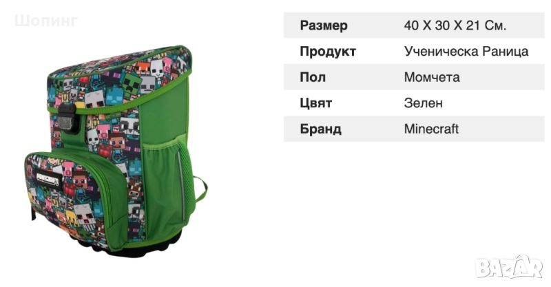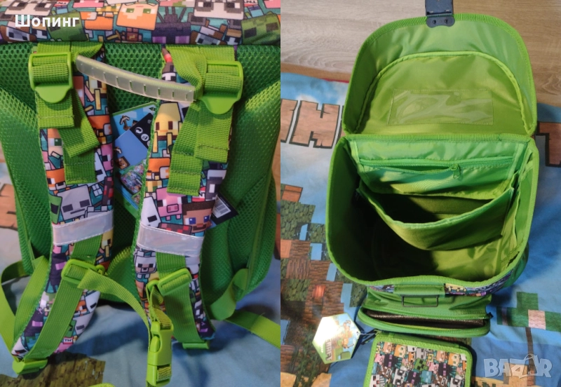 Чисто нова раница Minecraft Ergonomic, оригинален лиценз, с всички етикети. Голяма, стабилна.