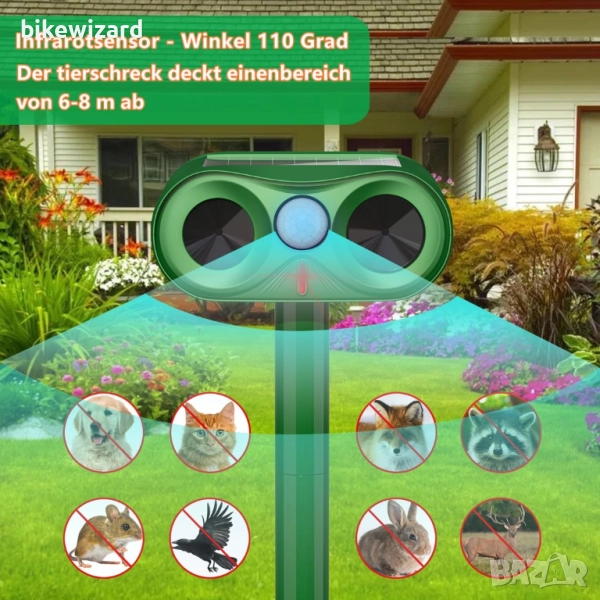 Ултразвуков репелент за за белки,котки, кучета, птици, мишки и др. НОВ