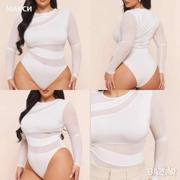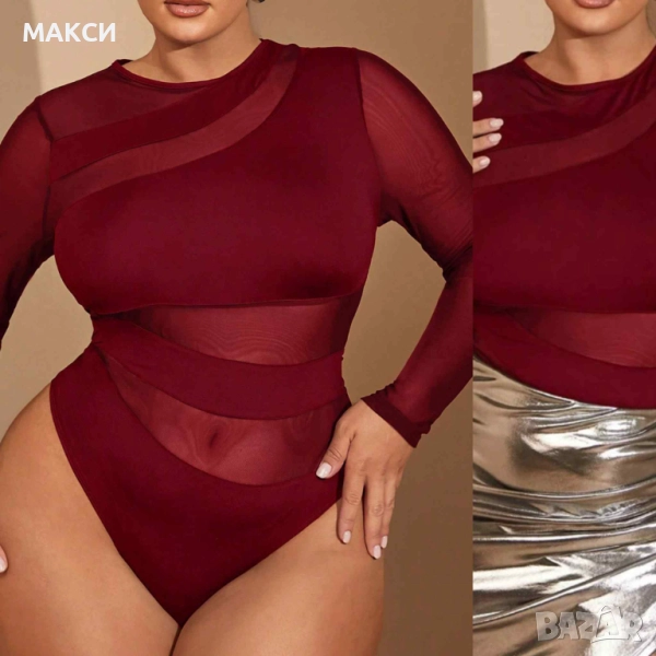 Макси модерно силно еластично боди с прозрачни части и ръкави в черно, бяло и бордо → Обява 51696226