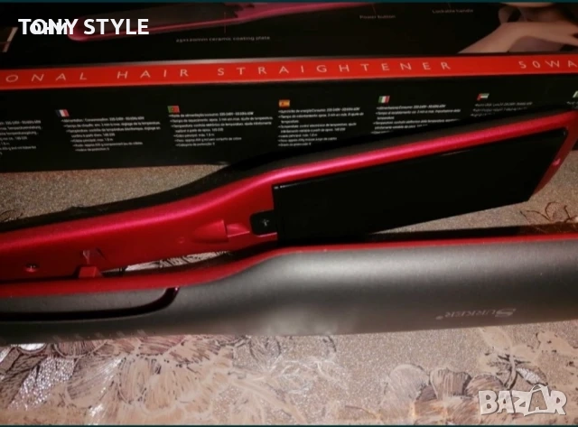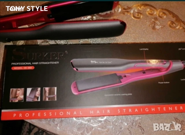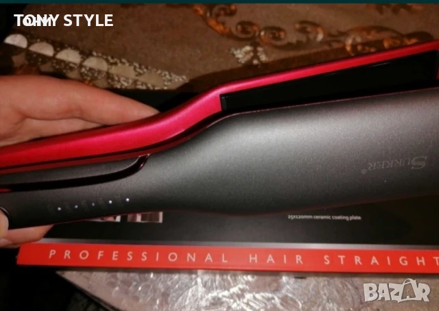Професионална преса за изправяне, с широки керамични плочи. Със 5 степени на загряване, Power button, Led Display. Пресата е с нов модерен дизайн, в цвят розово и сиво.