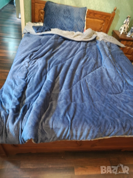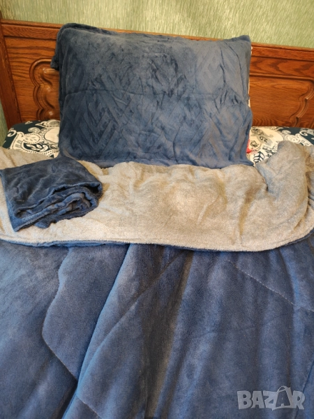 Нов Комплект от 3 части кадифен дебел дългокосместо зимно одеяло + 2 калъфки за възглавници