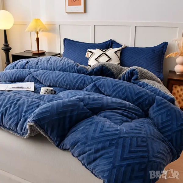 Комплект от 3 части кадифен дебел дългокосместо зимно одеяло + 2 калъфки за възглавници - супер меко, леки и топли, многофункционално одеяло, модерен стил ,размер на завивката 203 на 229 см калъфките са по тънички но също меки плик затваряне с размер дъл 74 шир 48 см .