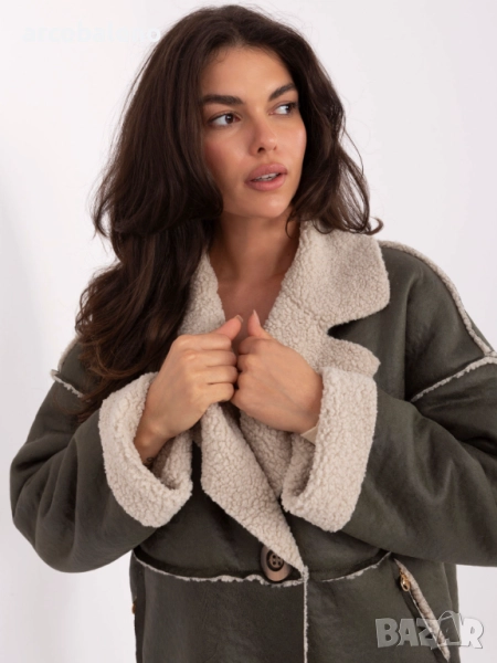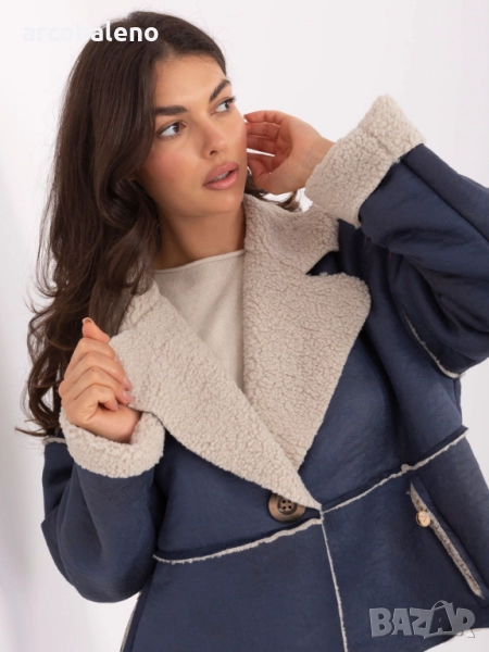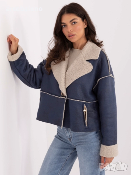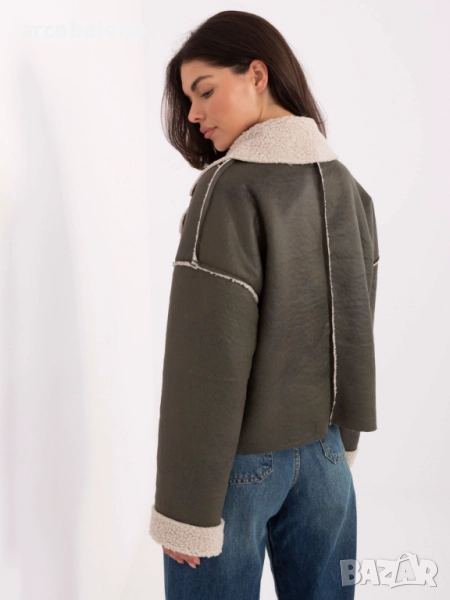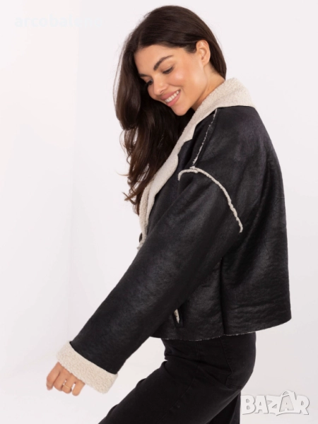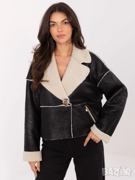 Дамско късо яке от еко кожа с подплата и имитация на джобове.
