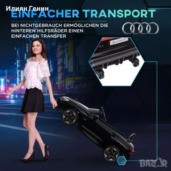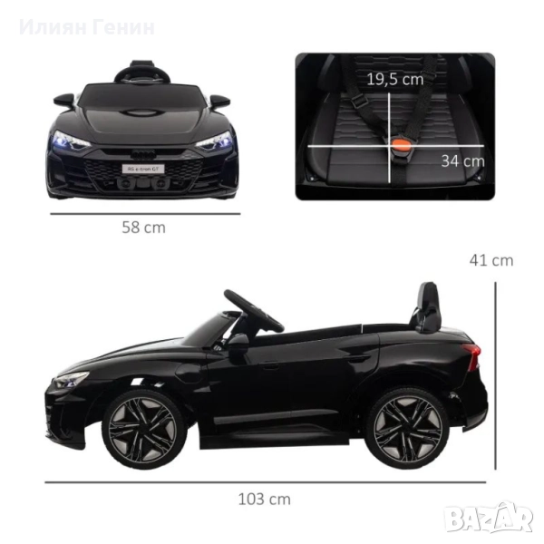 Електрическа количка за яздене HOMCOM, лицензирана от Audi, с предпазен колан, дистанционно управление и светлини, черна, 103 x 58 x 41 см - 300.00лв.