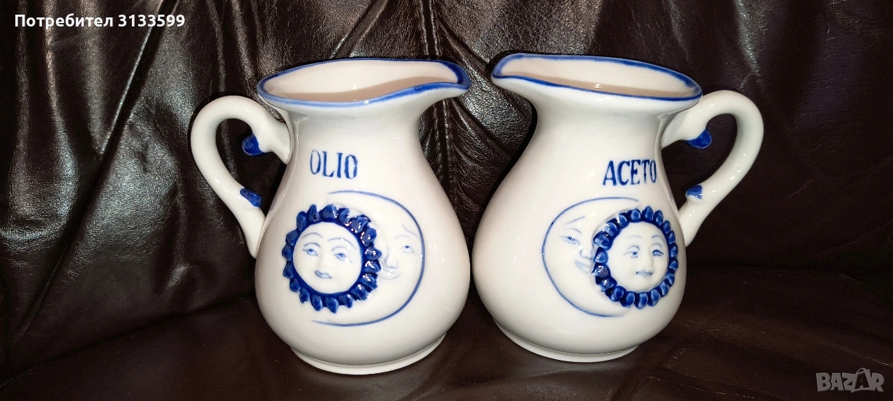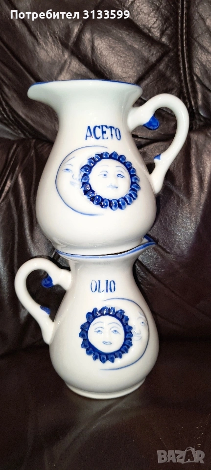 - Две порцеланови канички - за олио и оцет. Височина: 12 см, в най-широката част: 8,5 см. Отвор: 8/7 см. В отлично състояние. Липсва индикация за производител. ЦЕНА: 10 евро.