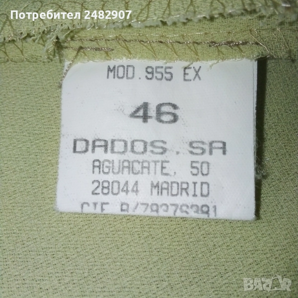 Горнището е с тънки подплънки на раменете и дълъг скрит английски цип на гърба. Дължина на ципа - 47 см.
