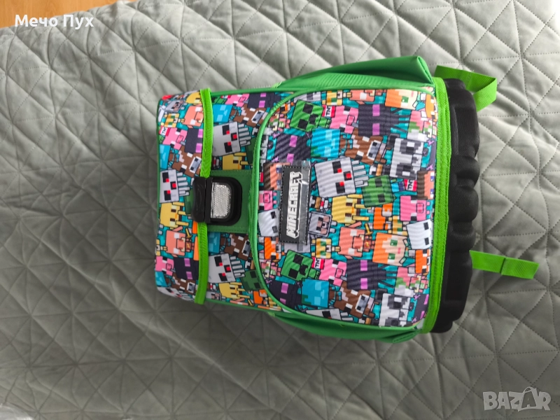 Minecraft. Изработена от здрави материали и с удобни презрамки за по-голям комфорт. Цветът на раницата е зелен.Ергономична раница, произведена по изискванията за немските ученици.