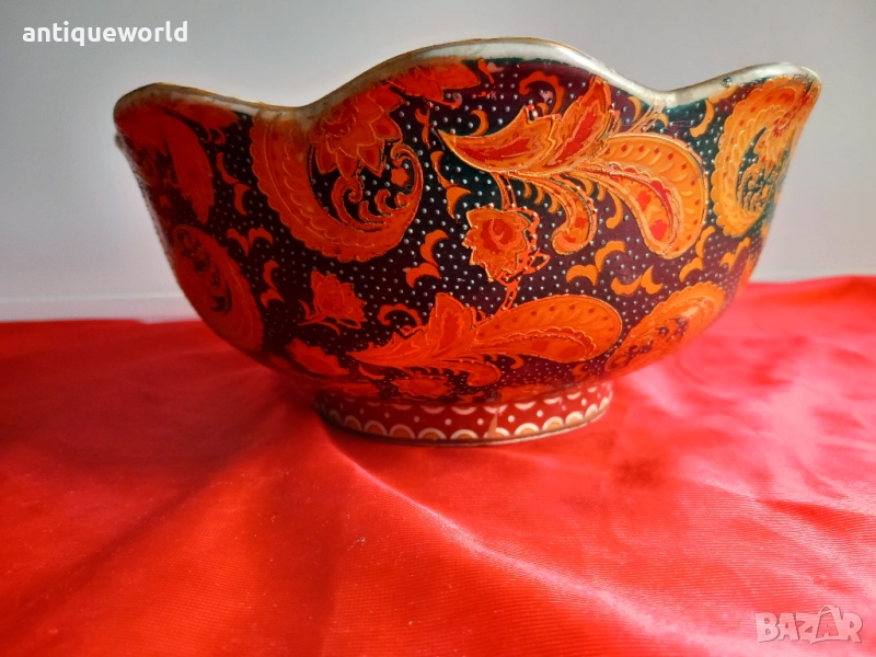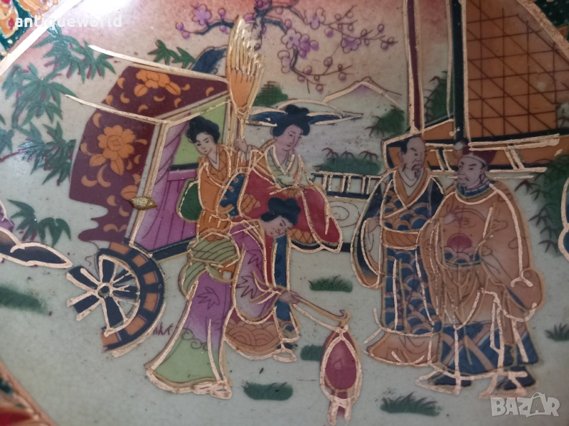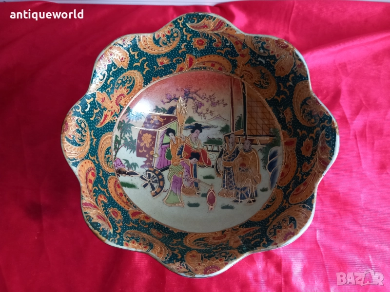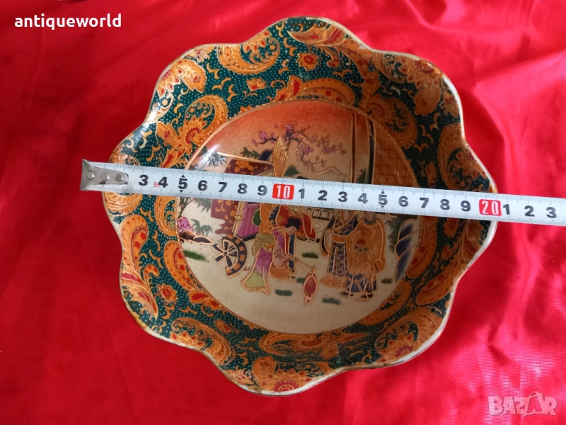 Много Красив Японски Порцеланов Стар Ръчно Рисуван Съд , КУПА SATSUMA , Серия Iceberg предназначена за Износ за Западния Пазар.