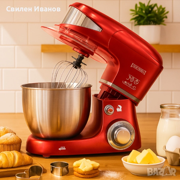 Приставки: кука за тесто, бъркалка, тел за разбиване + шпатула;