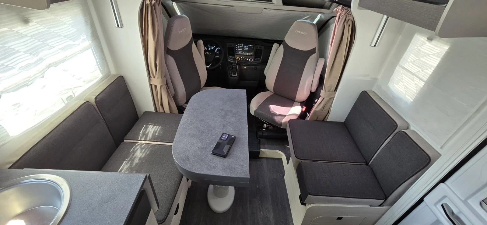 Camperisimo, официален вносител на марките Dethleffs, Giottiline и Sunlight. Внос на кемпери и каравани. Внос на най - добри цени на кемпери от марките Hymer, Carthago, Mobilvetta, Roller Team, Challenger, PLA, Notin. Над двеста кемпера налични за доставка до три дни! ! Наличен! Модел: Chausson 777 Titanium Ultimate Полуинтегриран кемпер на базата на Ford. Мощност 170 PS 125KW. Дължина - 7. 19м. Общо технически допустима маса 3500кг Брой места за спане - 5 Брой места за пътуване - 4 Брой места за хранене - 5 Въртящи се предни седалки. Дневна - сет, който може да бъде трансформиран в място за спане. Климатик в кабината на водача, Въздушна възглавница за водача и пътника отпред, Регулируеми по височина въртящи се седалки с двойни подлакътници, Луксозна тапицерия за седалките в кабината, Електрически огледала за обратно виждане с автоматично размразяване. Круиз контрол + ограничител на скоростта. GRP странични стени, Броня боядисана в бяло, решетка около радиатора и рамка на фарове черна. Място за съхранение на багаж по цялата ширина на автомобила. AES Хладилник 134L. КЛАС 3. Полиестерна защита, XPS изолация, под 64 мм, покрив 55 мм. Arctic pack Отопление на дизел, изолиран и отопляем резрвоар за сива вода, подово отопление, капак на решетката на хладилника, електрически бойлер. Connect pack Камера за задно виждане и мултимедия. Тента Thule Подготовка за стойка за велосипеди Комбинирано отопление на дизел със система за циркулация на въздуха 4000W. Най-добри стойности на изолацията в пазарния сегмент Преградни завеси между кабина на водача и интериор, Кухненски елементи: чекмедже, поставка за подправки, поставка за бутилки, държач за кофа за боклук, рамка на кухненския прозорец, Баня и тоалетна отделно. Външна бърза връзка за газ, Външна бърза връзка за душ. Интегрирана изолирана стъпка за влизане, Дизелово отопление с програмируемо цифрово управление, може да се използва и по време на шофиране. Панорамен покривен прозорец в кабината на водача, Панорамен покривен капак (или 2 покривни капака) за дневна, Комарник на централна врата. Стойка за телевизор, Прозорци с двойно заключване с комбинирани ролетни щори и сенник, Вътрешно и външно осветление 100% LED, USB портове, Technibox: централизирана техническа зона. Две легла в задната част по 90см ширина, които чрез съединение могат да бъдат обединени в една цяла спалня. Мултимедия със сензорен екран, камера за задно виждане, Термо и слънцезащитни плисирани щори на кабината, Електрическо легло с повдигане, Шкафове с плавно затваряне, Луксозна врата на дневната с прозорец, щора против насекоми и две охранителни ключалки, Премиум матраци. Две големи врати за лесен достъп до гаража. Гаранция: 7 години против протичане, 2 години на превозното средство