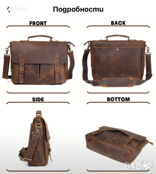 Изработена от плътна (мека) висококачествена 'Crazy Horse' кафява телешка кожа с уникална обработка и ефект.