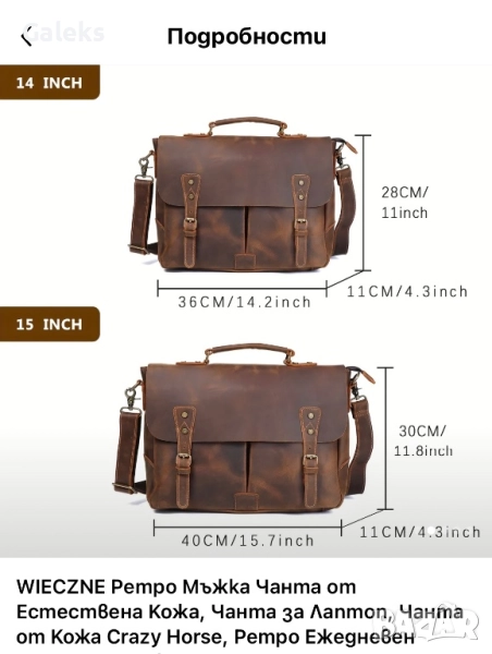 Мъжка кожена ретро чанта “WIECZNE” Луксозна кафява Crazy Horse* кожа!