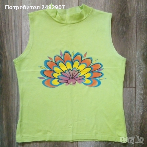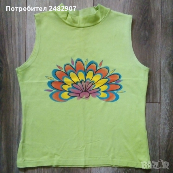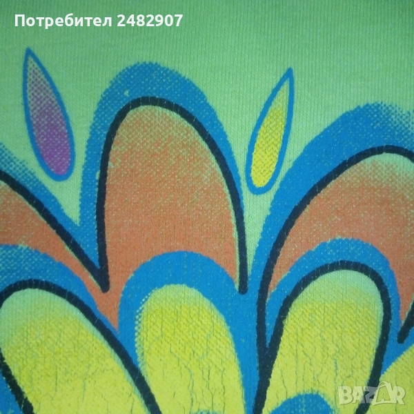 Детски потник с щампа за момиче за възраст 6-7 години. Съдържа 95 % памук и 5 % ликра. Ширина в раменете - 28 см, ширина под мишниците - 38 см, ширина в долната част - 38 см, дължина от рамото до долу - 45 см. Много запазен, почти не е използван, без забележки.