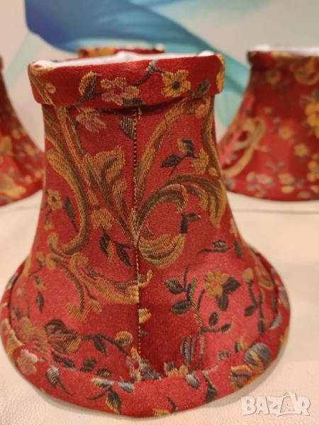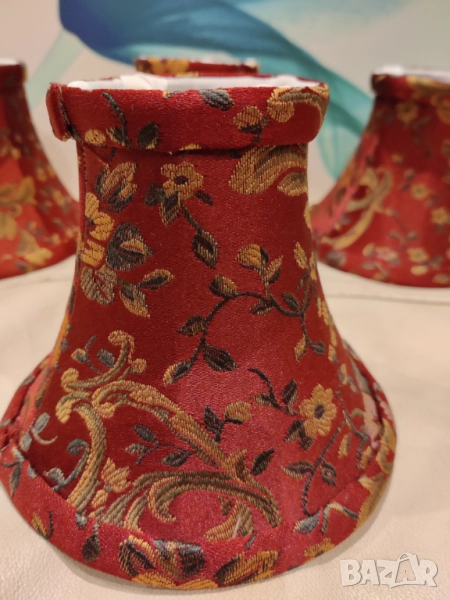 Височина на лампата 46 см. Цена 20 евро Четири абажура за лампи. Цена 2.5 евро за брой. Единият има забележка затова е подарък ако закупите всички.