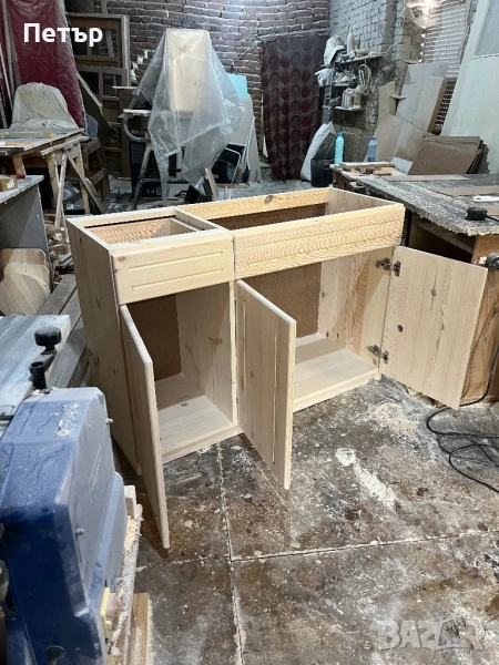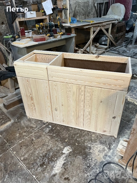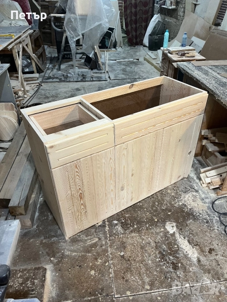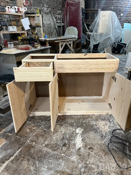 Долен кухненски шкаф за мивка от естествено дърво бор,чам с три плавно затварящи врати и едно чекмедже