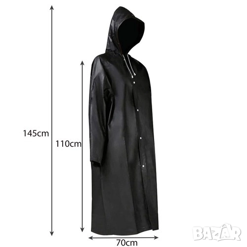 Практичен и надежден дъждобран, който ефективно предпазва от намокряне дори при силен дъжд. Изработен от водоустойчив EVA материал с добавени найлон, смола и PP, той изсъхва бързо и гарантира сухи дрехи и комфорт при лошо време. Дългата кройка и качулката с връзки осигуряват пълно покритие и максимална защита.